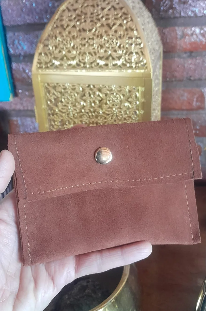 El estuche de cuero reno con broche es una opción utilizada por empresas que buscan un producto con mayor valor percibido. Su diseño compacto y material tipo gamuza lo convierten en un accesorio elegante para guardar tarjetas, dinero u objetos pequeños.